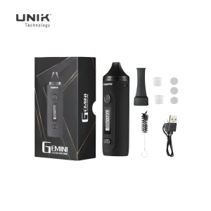 Experience ultimate convenience with the UNIK Gemini Vaporizer. This portable dry herb vape features a stainless steel oven, adjustable temperature, OLED display, and long-lasting 2200mAh battery. Compact, lightweight, and powerful for a personalized vaping experience.