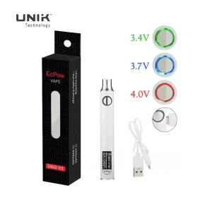 Specifications for EcPow UGO V3 Vape Battery Model: EcPow UGO V3 Vape Battery Voltage Range: 3.4V – 4.0V Battery Capacity: